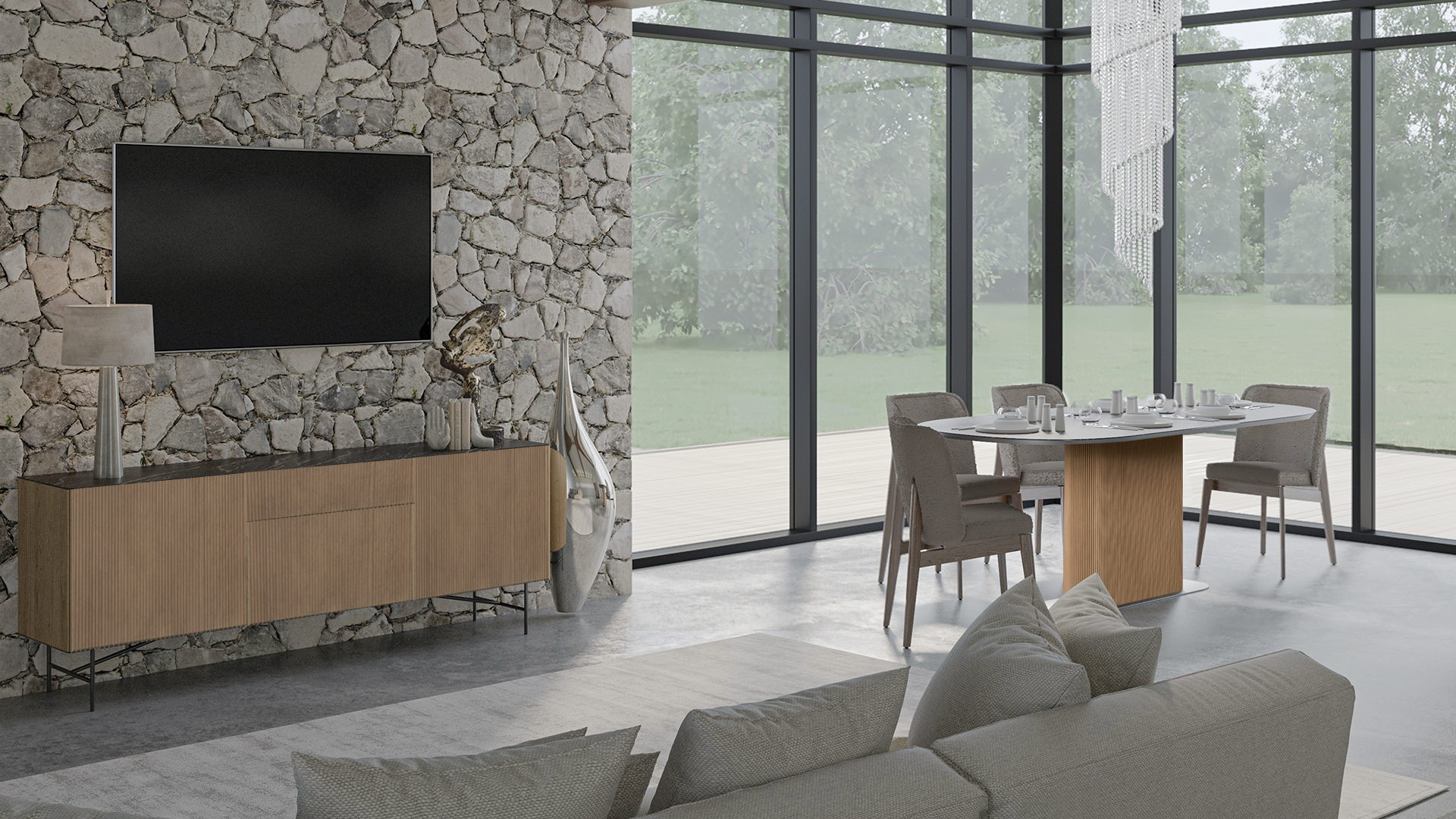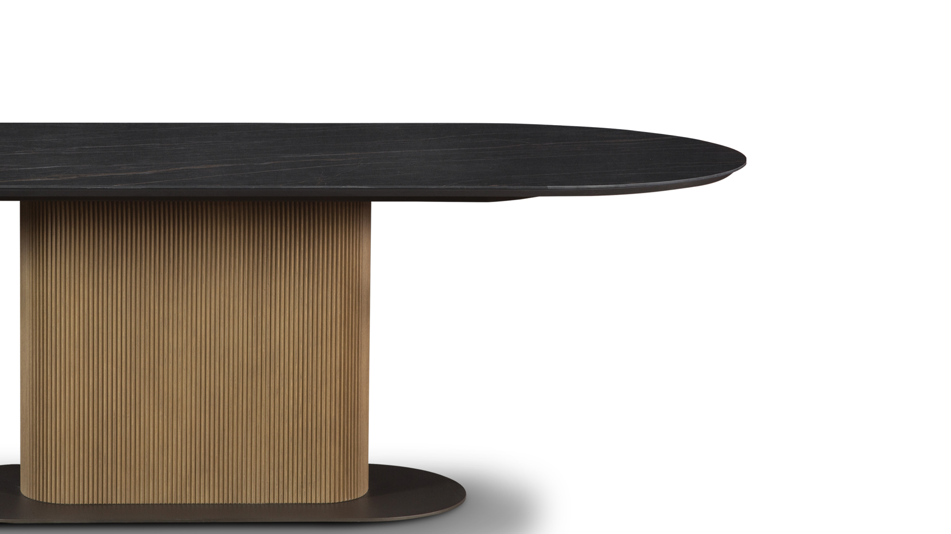 To Goliath Plus είναι το τραπέζι που συνδυάζει τα ομορφότερα υλικά. Την κεραμική επιφάνεια, μεταλλική βάση και μασίφ πάνελ κυκλικής επιτομής.