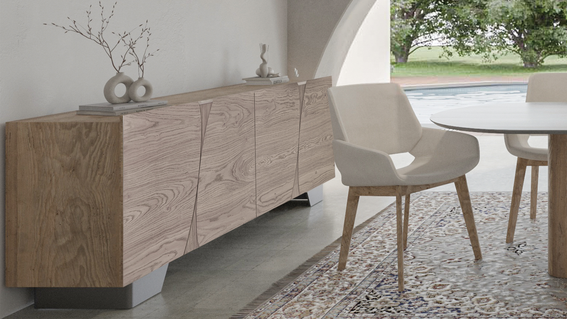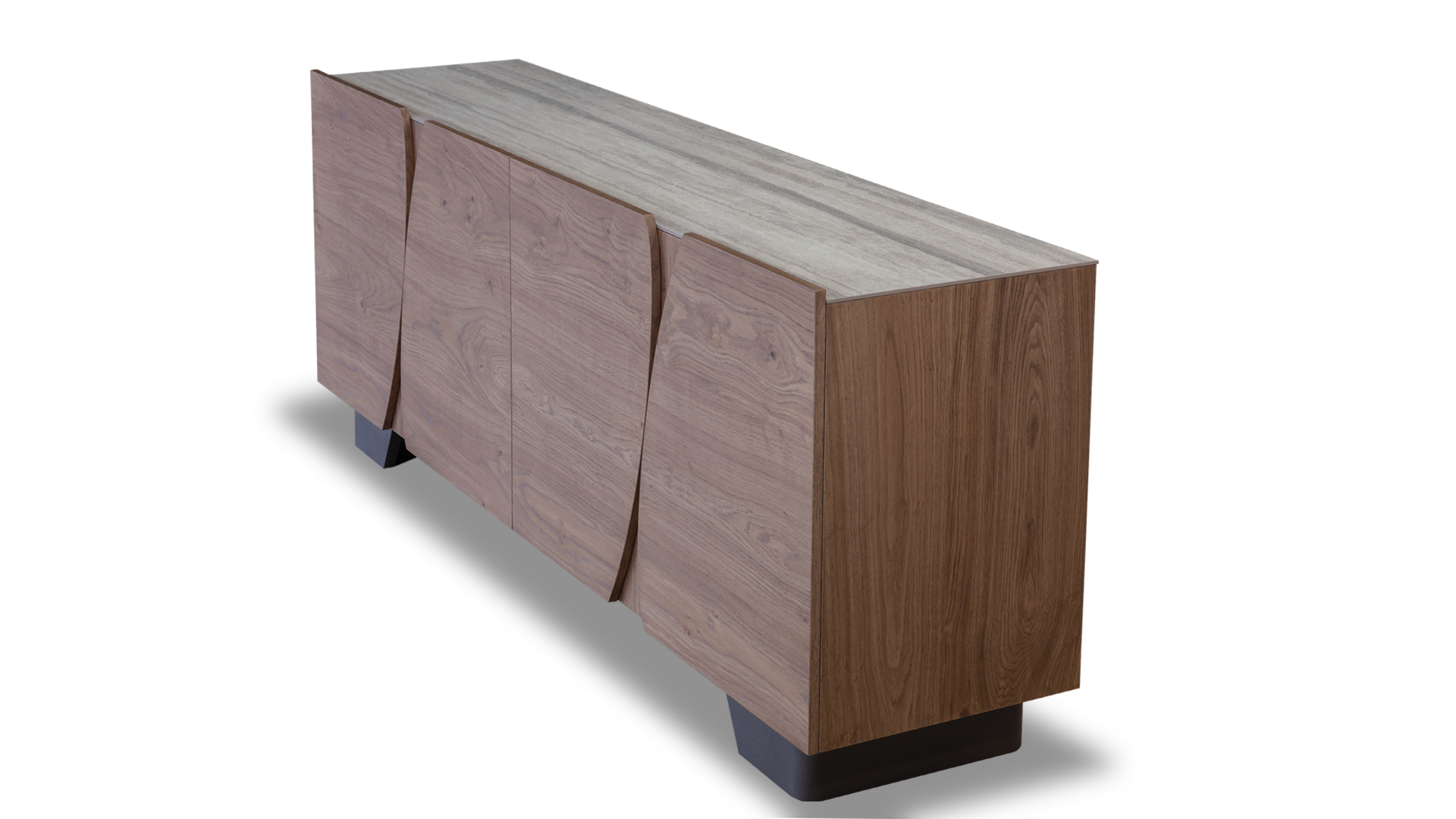 Ένας εντυπωσιακός μπουφές, με κεραμική επιφάνεια και εντυπωσιακο σχήμα στις πόρτες.